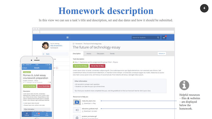 Watch video Features Benefits Security What's included? With all homework attachments, deadlines and instructions online, you have everything you need at your fingertips.